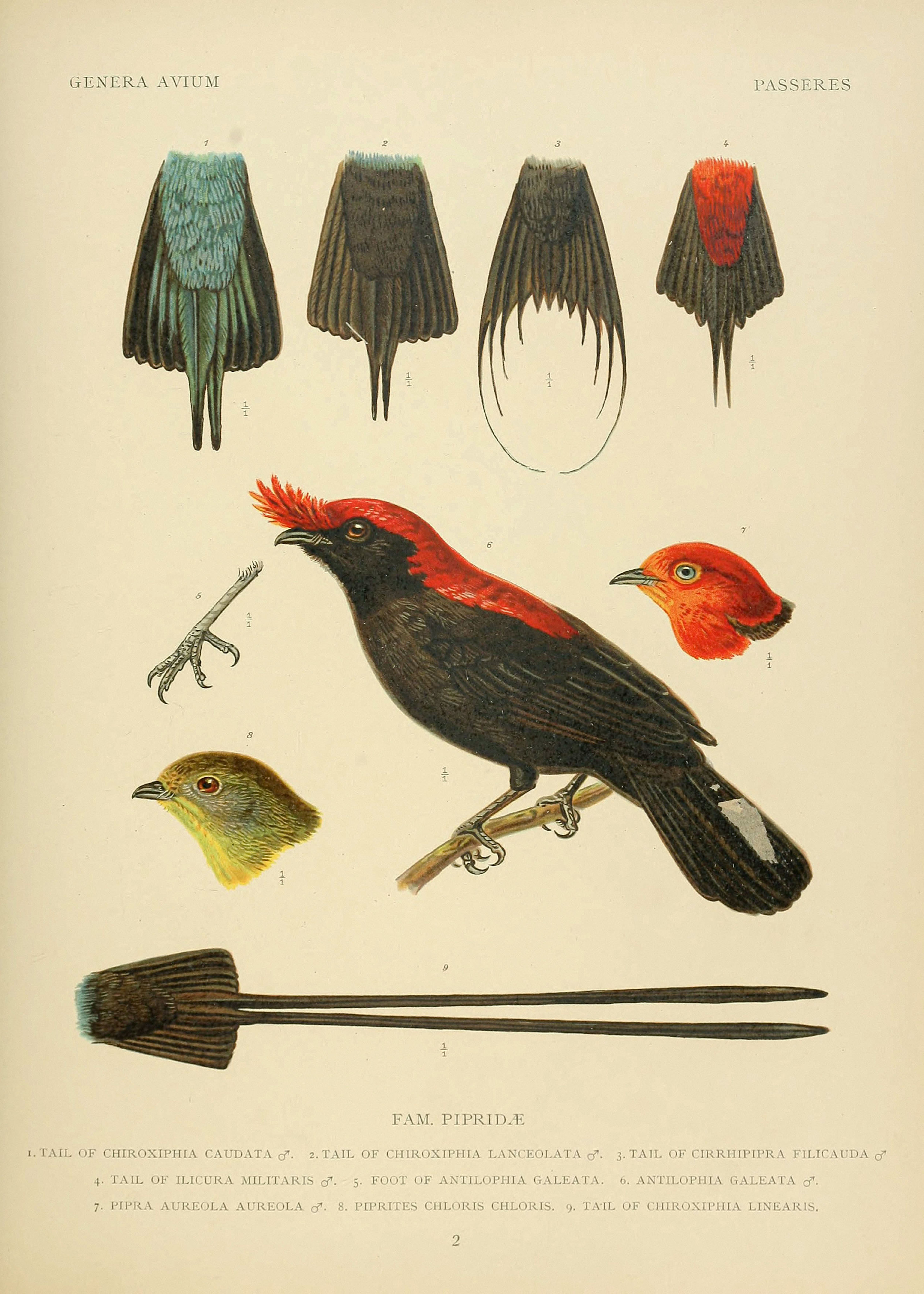 Helmeted Manakin in the Family Pipridae